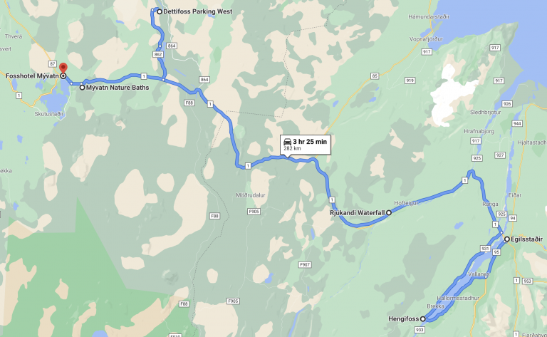 - Possible side trip (not on our route map) is to go up to the coastal town of Húsavík about 45 minutes north, but we didn't due to time constraints. You could also take drive around the lake, about 30-45 minutes.