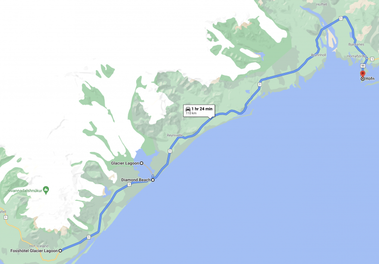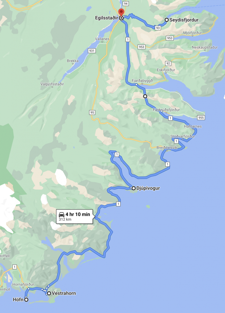 This is one of the longer days of driving, so another reason to maybe visit Vestrahorn on the previous day since it's so close to Höfn.